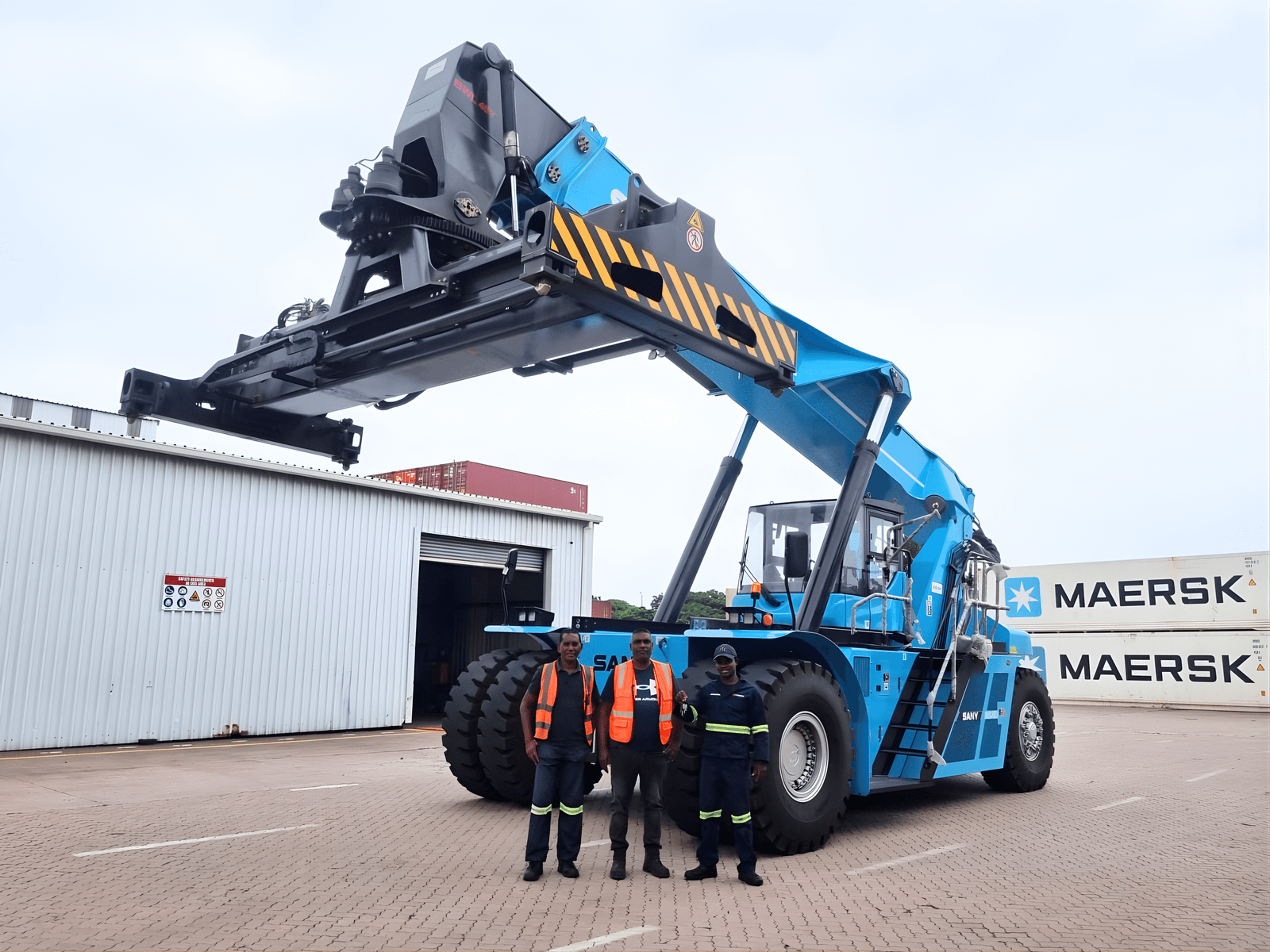 Grindrod Logistics, in partnership with General Heavy Marine (GHM), has launched a pilot deployment of South Africa’s first fully electric reach stacker, the SANY SRSC45E3. This milestone marks a major advancement in sustainable port operations and electric container handling equipment within the South African logistics sector.
